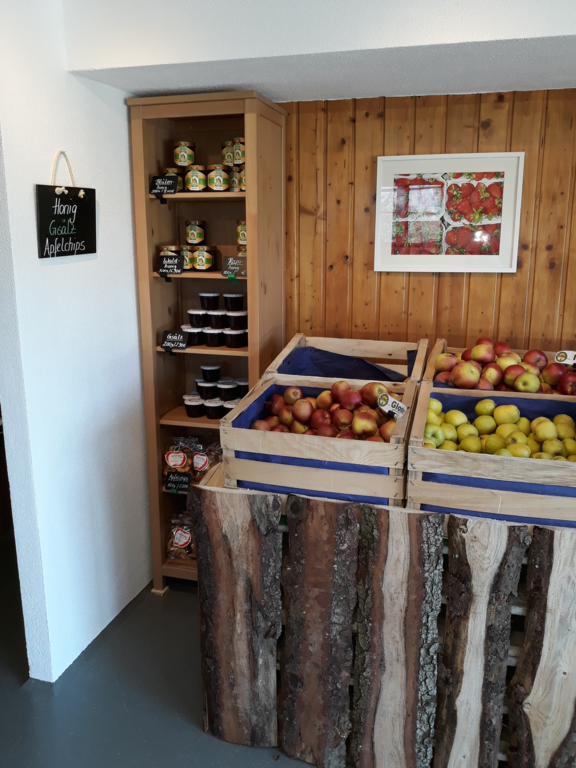 Äpfel - Birnen - Erdbeeren - Kirschen - Zwetschgen - Pflaumen - Dosenwurst - Schaffelle - Schnäpse - Eier - Marmelade - Apfelsaft - Geschenkkörbe - Apfelchips - Honig - Käse - Kartoffeln - Nudeln